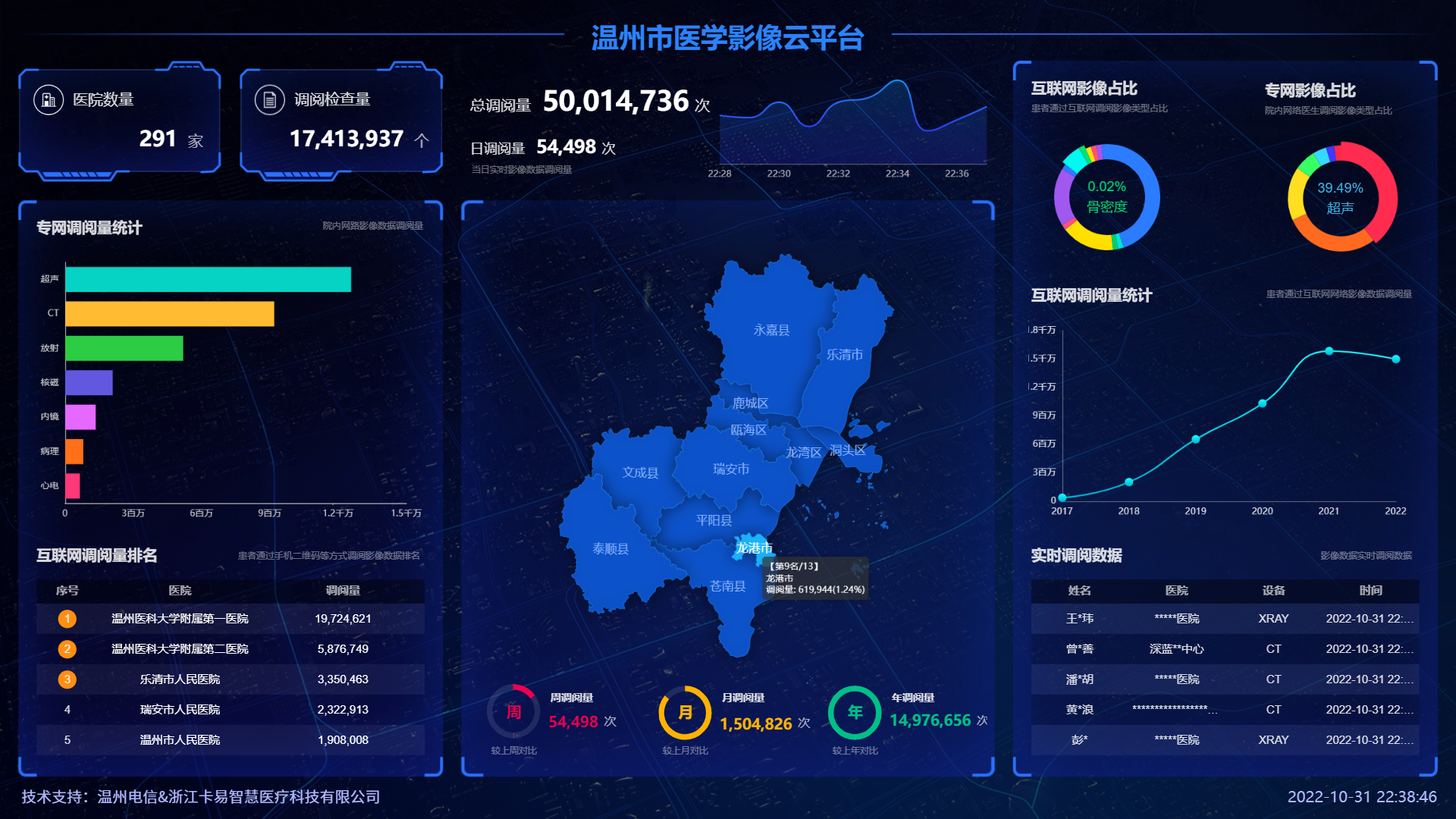 浙江省內(nèi)最大云影像平臺 日均移動調(diào)閱量7.5萬次 平臺總調(diào)閱量超過一億次 2018年浙江省醫(yī)療衛(wèi)生服務領域“最多跑一次”改革十佳案例(影像云唯一)
